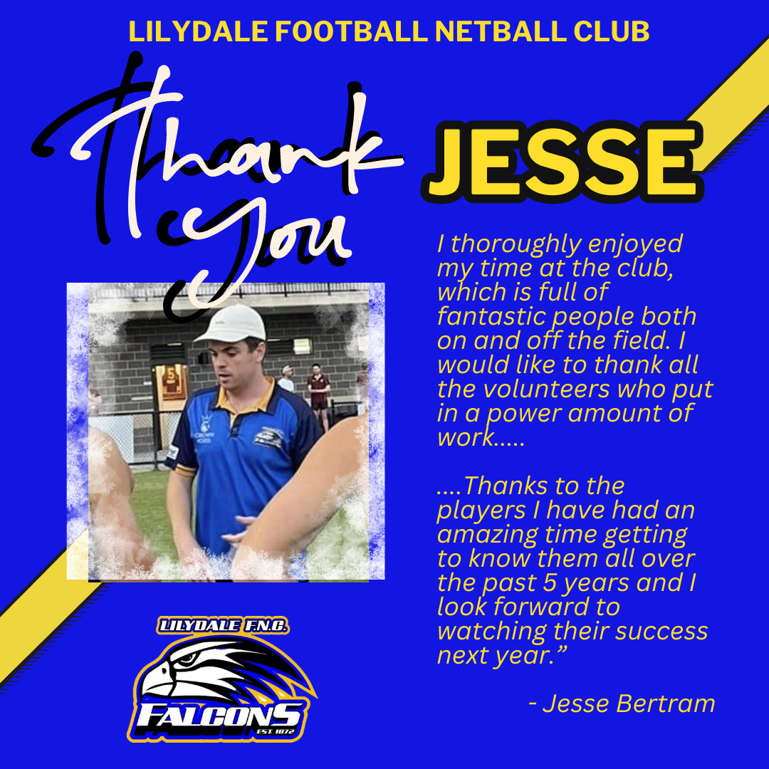 From the Lilydale Football Netball Club Committee, Life Members, Players, Sponsors and Supporters we THANK Luke, Bec, Alice, Chloe & Bridie; Jesse & Mal, for all their time and commitment over the years.