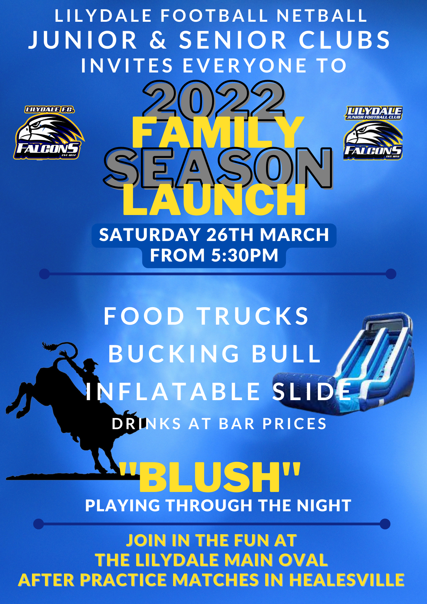 Lilydale Football Netball JUNIOR AND SENIOR Clubs are joining together to Launch Season 2022.