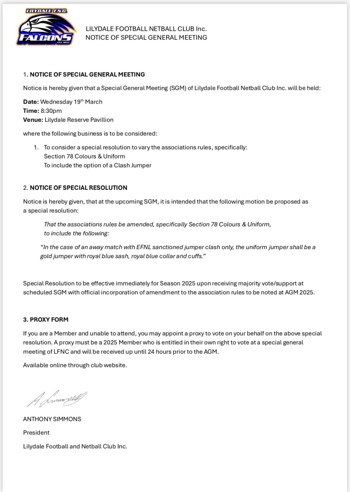 We wish to inform all supporters, members, committee & Life Members of the 2023 Annual General Meeting to be held on Wednesday 22nd November at the senior clubrooms from 7:30pm.